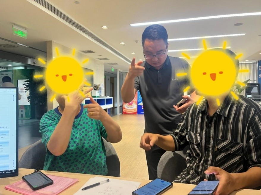 工作人員為聾啞老齡客戶提供個(gè)性化服務(wù)