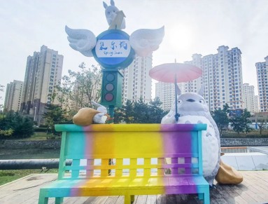 泉樂坊公園坐落于五渚河溫泉段,泉樂坊商業(yè)街南側(cè),面積約2.7萬平方米。公園的設(shè)計(jì)上,巧妙采用“一帶、九景、多節(jié)點(diǎn)”的功能結(jié)構(gòu)布局。其中,“一帶”指五渚河濱水岸帶,它宛如一條靈動的絲帶,將公園的精華景觀串聯(lián)成珠;“九景”則涵蓋龍貓車站、天空之境、開往春天的列車等諸多景觀,這些景觀造型復(fù)古且充滿文藝氣息,極為適合游客拍照打卡。