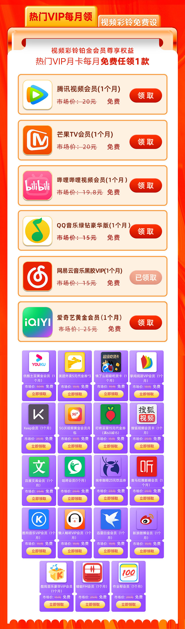 二十多款熱門(mén)APP,VIP會(huì)員,月月領(lǐng),月月?lián)Q!