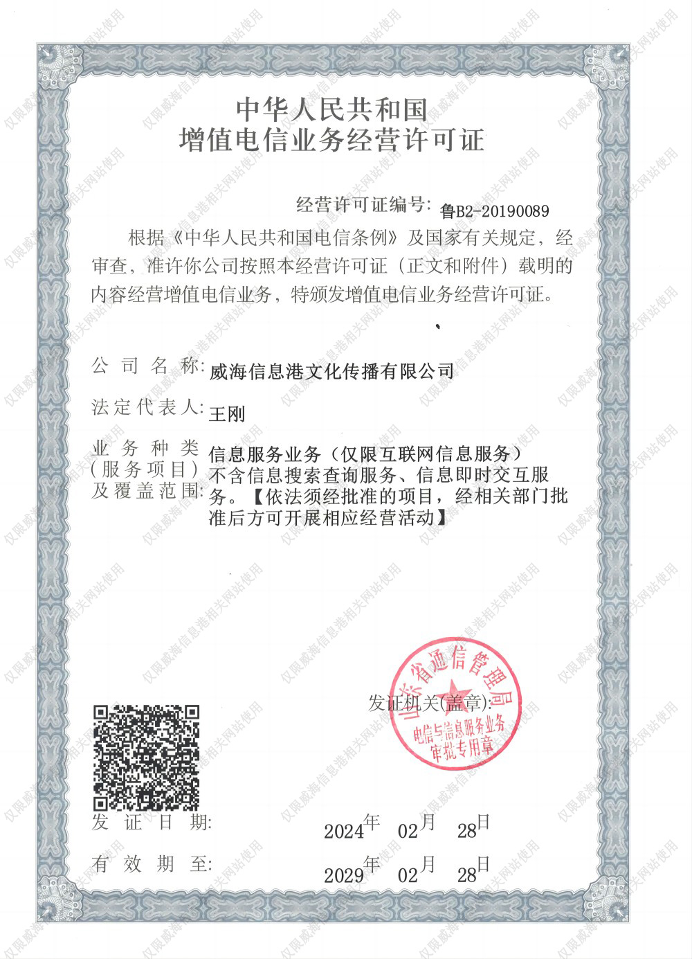 增值電信業(yè)務(wù)經(jīng)營許可證