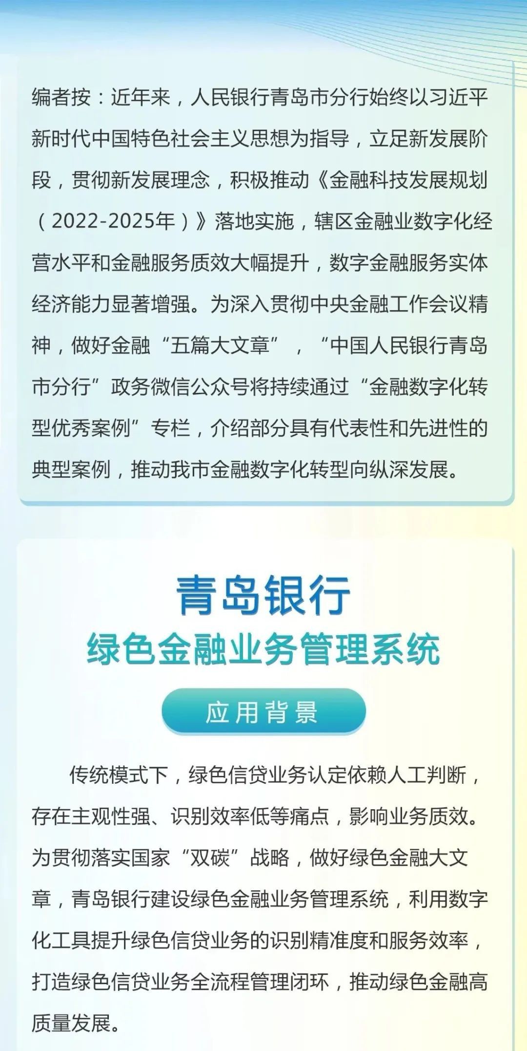 金融數(shù)字化轉型優(yōu)秀案例|青島銀行綠色金融業(yè)務管理系統(tǒng)