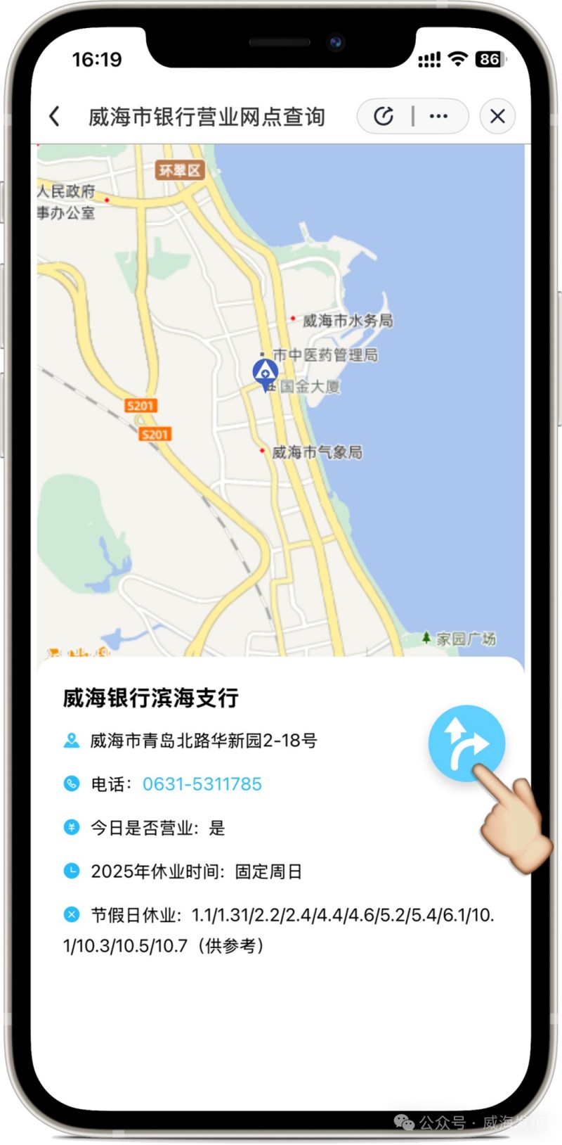 平時(shí)上班不方便,周末休假想去銀行辦理業(yè)務(wù)又不知道銀行是否休假?以后再也不用發(fā)愁了!近日,威海市大數(shù)據(jù)局聯(lián)合國(guó)家金融監(jiān)督管理總局威海監(jiān)管分局,在“愛(ài)山東”APP(威海分廳)上線了“威海市銀行營(yíng)業(yè)網(wǎng)點(diǎn)查詢”應(yīng)用,基于地圖為市民直觀便捷提供全市銀行網(wǎng)點(diǎn)營(yíng)業(yè)休息信息的查詢服務(wù),再也不用擔(dān)心白跑一趟了!