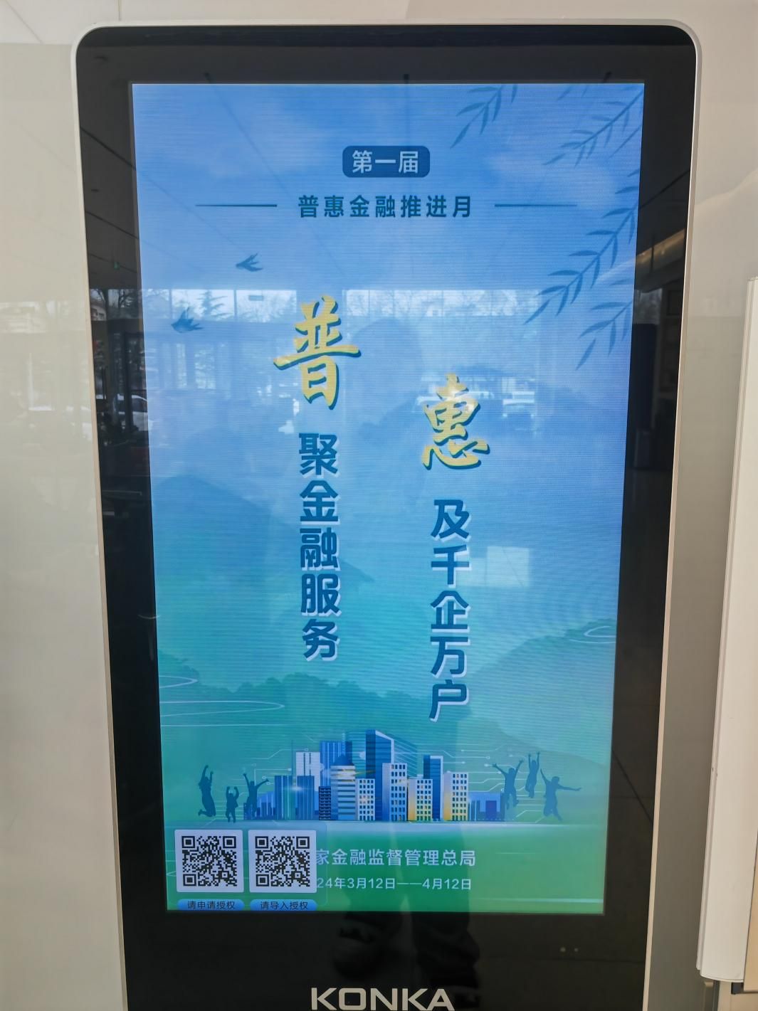 圍繞“普聚金融服務,惠及千企萬戶”活動主題,在轄內多個網點電子屏統(tǒng)一布放國家金融監(jiān)管總局下發(fā)的宣傳海報,LED屏滾動播放“普惠金融推進月”、“普聚金融服務,惠及千企萬戶”等宣傳信息,通過多種形式的宣傳活動,積極對接市場主體和人民群眾金融需求,宣傳介紹普惠金融政策和產品,以高質量的金融服務,為服務實體經濟發(fā)展貢獻招行力量!